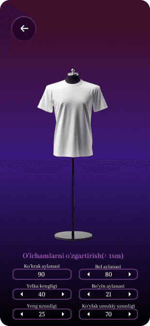 Siz bergan o'lchamlar asosida soniyalar ichida javob oling va boshlash tugmasi orqali hech qanday qo'shimcha yordamlarsiz kiyim tikishingiz mumkin.